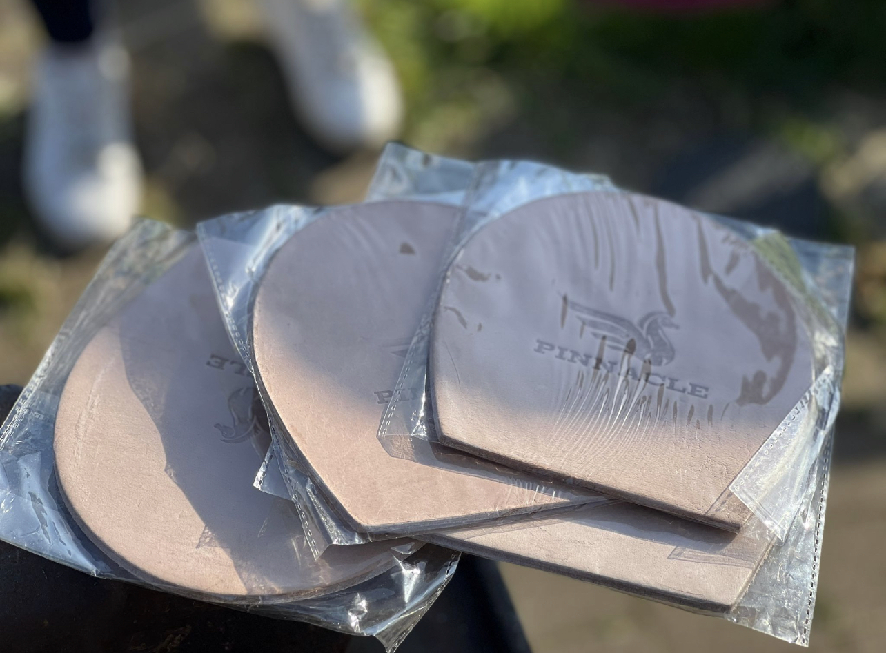 Pinnacle leather Pads are ideal for hoof care relief. The pads fit between the horseshoe and the hoof for perfect shock absorption allowing for a faster healing process. Manufactured from the best quality, natural, vegetable tanned leather with no harmful chemicals, pinnacle Leather hoof pads are uniform in shape and are cut with clean edges. Price is per pair.